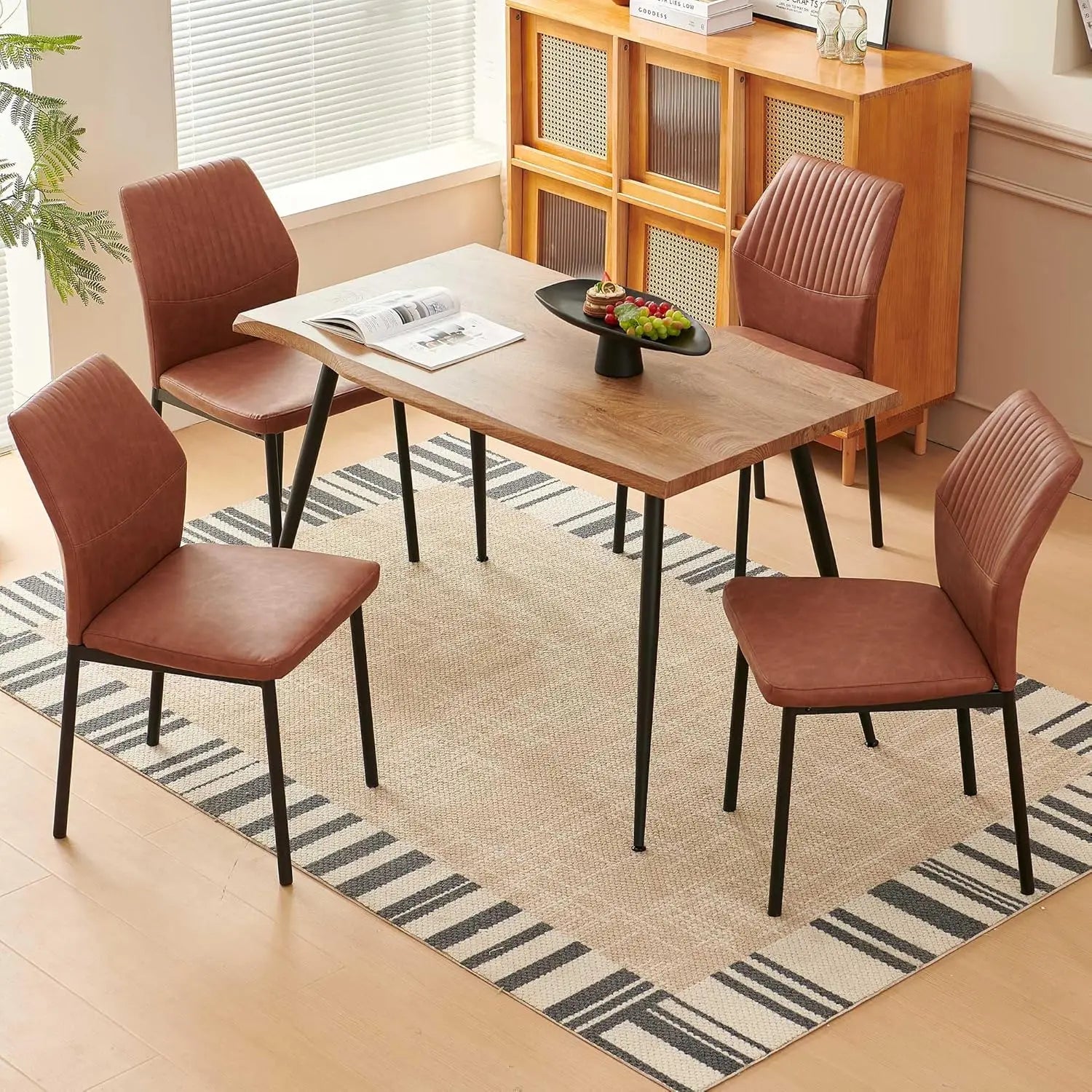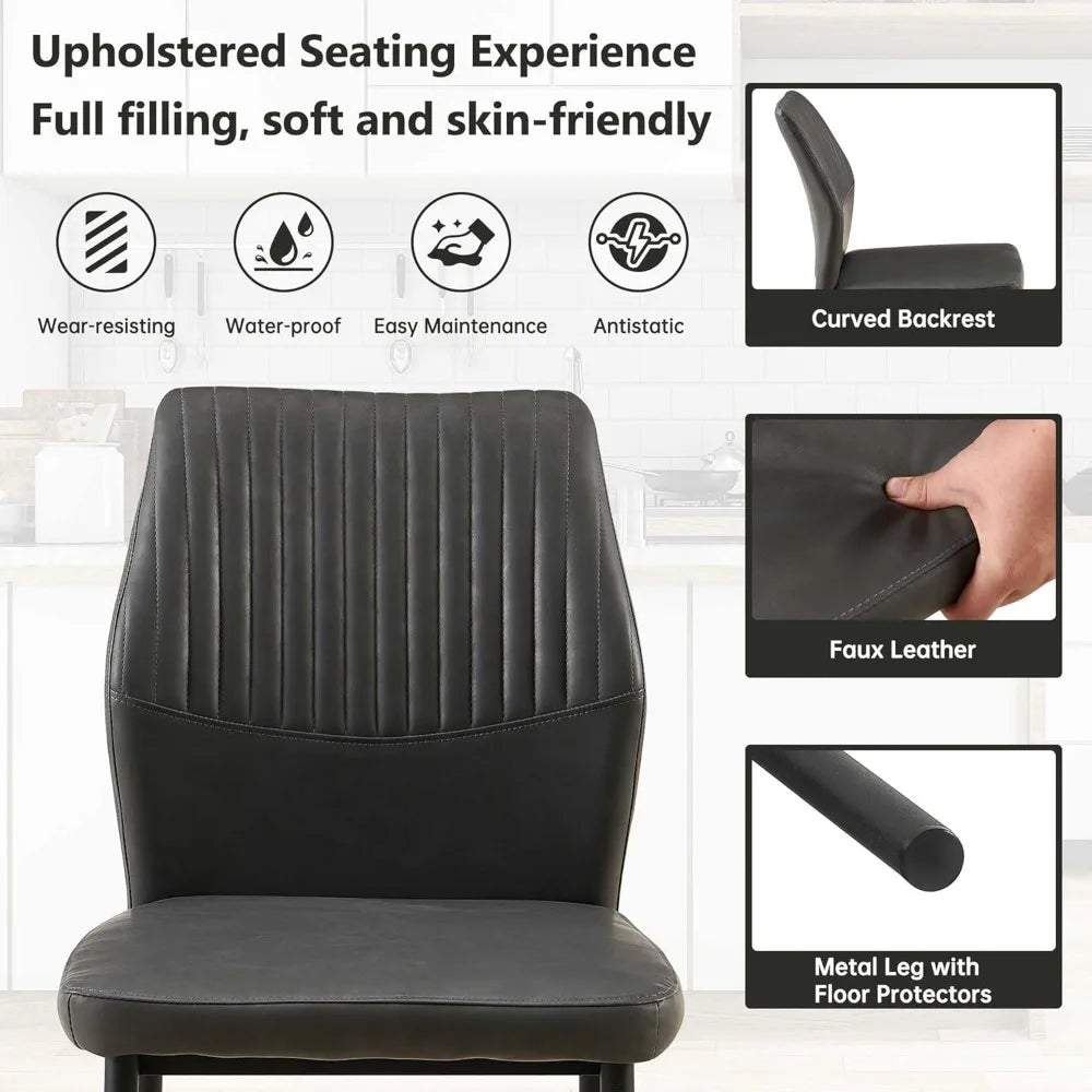 - Comfortable dining chair: The dining chair is wrapped in water-proof PU leather, and the chair back adopts an ergonomic curved design and high-elastic sponge for a comfortable hand feel. The chair legs are made of metal and are strong enough to support you and your family.