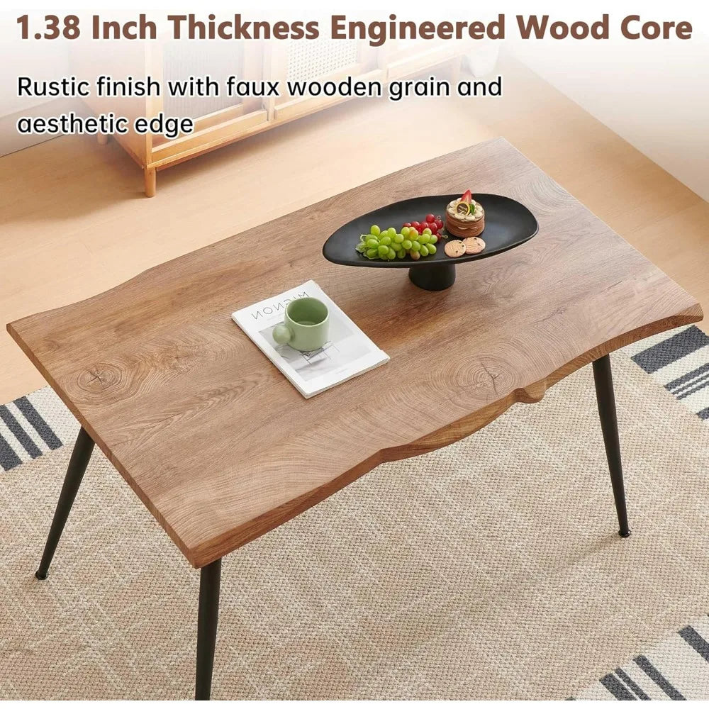 - Stylish and Sturdy Design: Crafted with a modern irregular shape and featuring a MDF tabletop supported by a matte black metal frame, this table blends industrial and rustic styles effortlessly. It adds a chic touch to any kitchen, dining room, or living space.