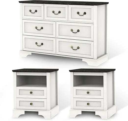 - Farmhouse Bedroom Set: Included 1pc 6 Drawer Chest And 2pcs Side Tables. Our Furniture Showcases Exquisite Wood Grains That Enhance Authenticity And Rustic Charm. The Same Style And Harmony, No Need To Worry About Mismatching